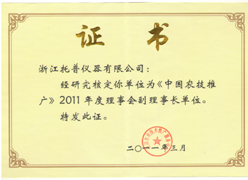 熱烈祝賀托普儀器成為《中國農技推廣》2011年度理事會副理事長單位