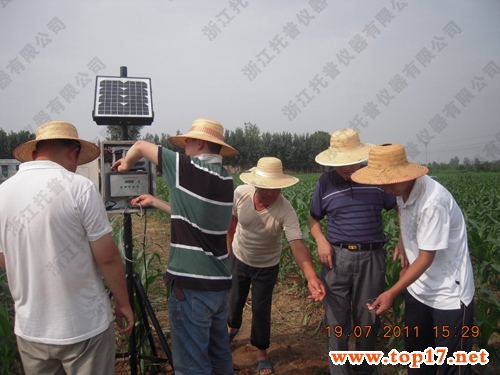 2011年7月19號無線多點墑情監測系統落戶山東省泰安市岱山區。托普儀器技術人員在山東省太鞍市農業局領導的陪同下來到岱岳區太鞍市農業局的一片試驗田開始了為期三天無線多點墑情監測系統的安裝、調試。