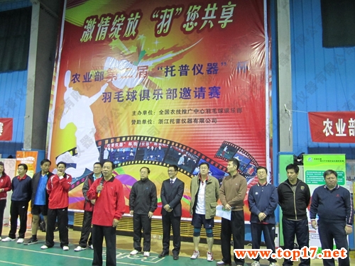 由全國農技推廣中心羽毛球俱樂部主辦、浙江托普儀器有限公司全程贊助承辦的第二屆農業部“托普儀器”杯羽毛球邀請賽2011年12月24日在北京貝特羽毛球館隆重舉行。全國農技中心陳生斗主任為本次活動開幕式并致辭。
