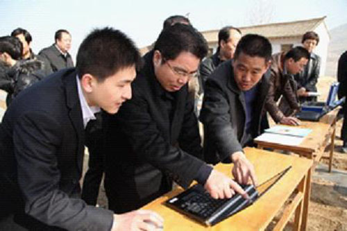 圖為:托普儀器技術人員為葉貞琴司長(中間)演示電腦查看墑情數據