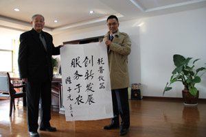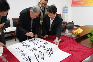 圖為:中國科學(xué)院院士、原浙江農(nóng)業(yè)大學(xué)校長、中國核農(nóng)學(xué)創(chuàng)始人陳子元院士(右二),全國農(nóng)業(yè)技術(shù)推廣中心栗鐵申副主任(中間),全國農(nóng)業(yè)技術(shù)推廣中心節(jié)水處高祥照處長(右一),杭州市拱墅區(qū)區(qū)委常委、區(qū)科技工業(yè)功能區(qū)管委會(huì)范永晨書記(左二)在簽名處合影留念